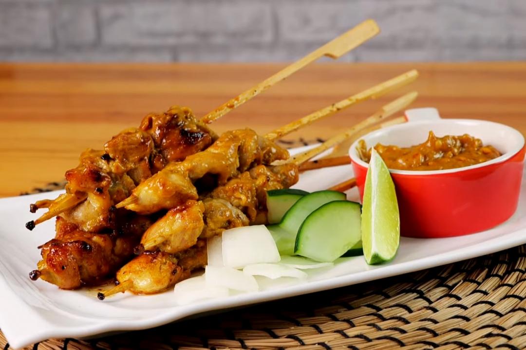 將醃好的雞肉串在竹籤上,每支約4~5塊。取平底鍋放入肉串以中火煎烤,每面約3~4分鐘,至熟透後起鍋,搭配沙嗲醬一起上桌即完成。