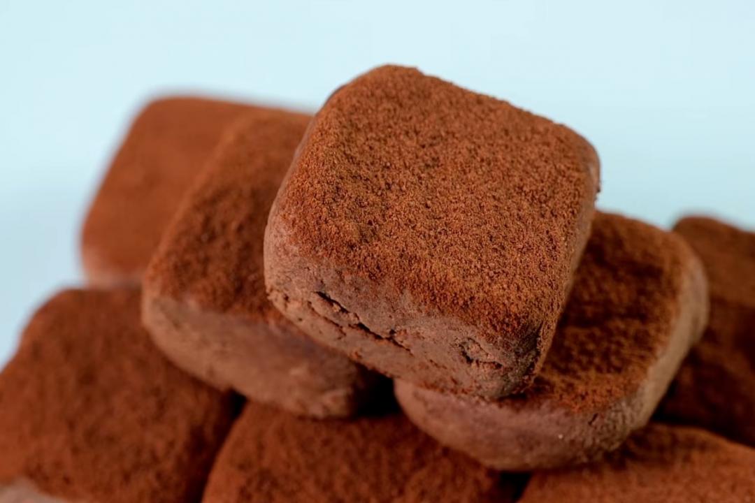 將巧克力漿以模具或保鮮盒塑形(可墊保鮮膜方便脫模),放冰箱冷藏至少2小時定型,取出後依喜好切成小方塊,撒上少許可可粉即完成。