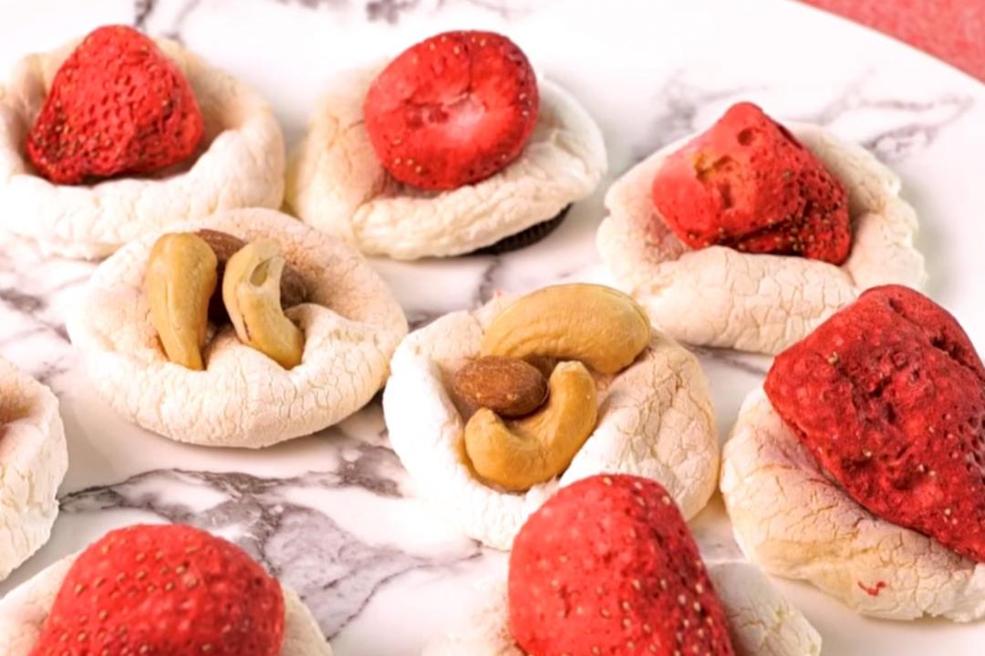 趁熱將喜歡的堅果或果乾壓上固定,放涼後即可品嘗。
